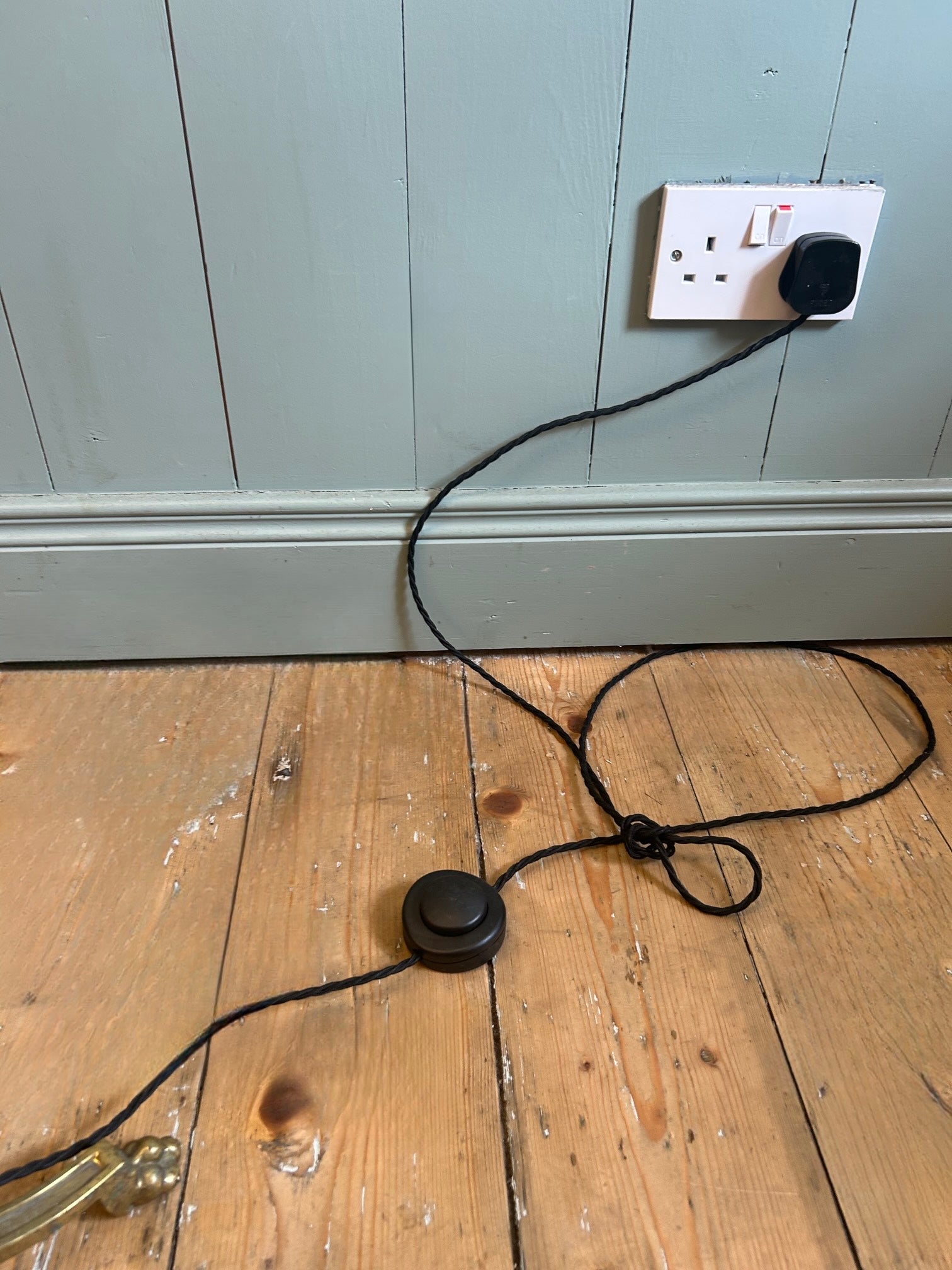 Each lamp has been fitted with up to date electrical workings and complies with the latest electrical safety regulations and codes for Ireland. Both come with long antique-style fabric braided wiring complete with floor switch.
