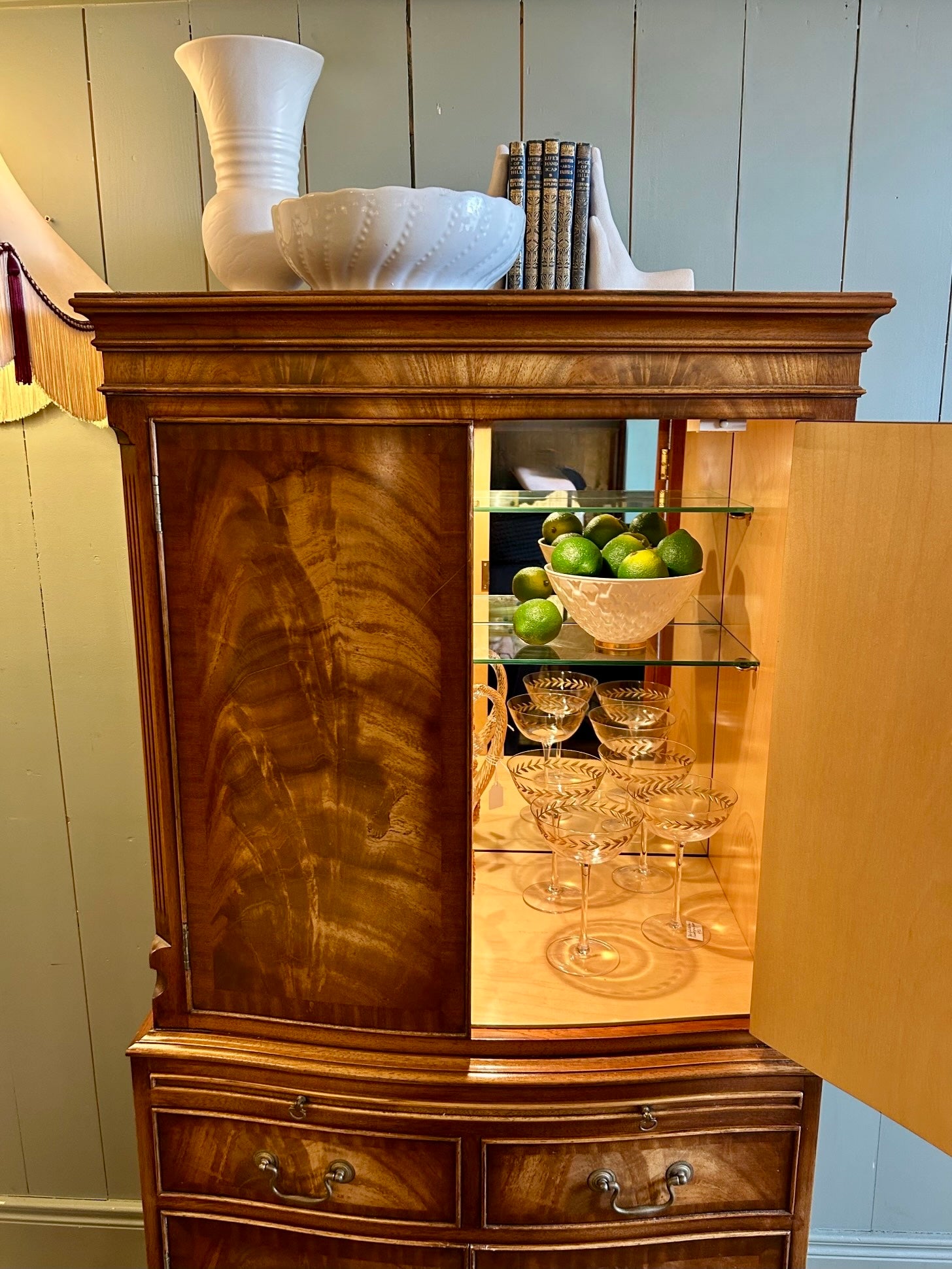 With its gently bowed front, elegant proportions and rich walnut tones, this is a handsome and highly functional piece that would make a wonderful focal point in a sitting room or dining space.